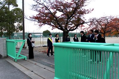 11月17日(月)、11月18日(火)にPTA生活委員と生徒会役員、生徒生活委員で冬季の交通安全マナーアップ運動を実施しました。 生徒の下校時間に交通マナーについての啓発活動のための呼びかけや交通整理を行いました。