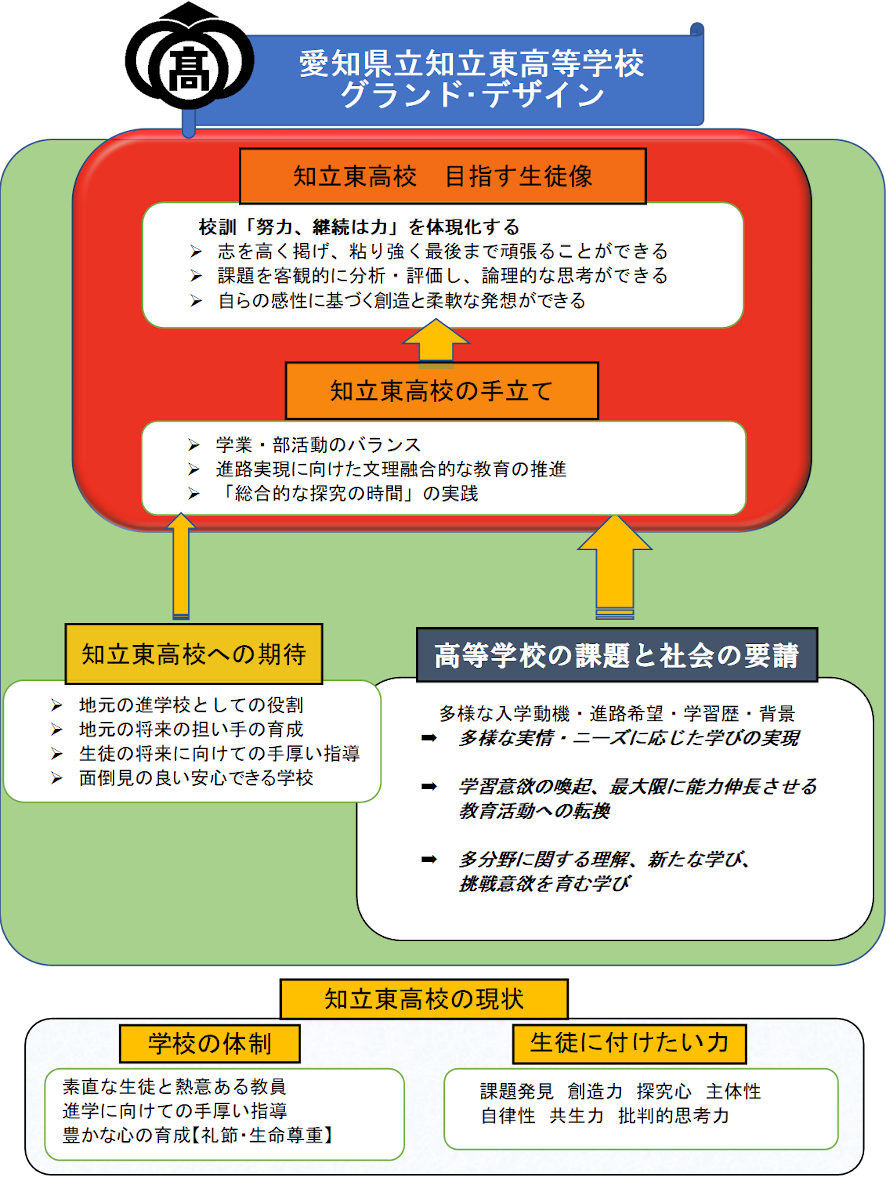 シンプルな均衡美の中に 愛知県立知立東高等学校の「高」を配した。